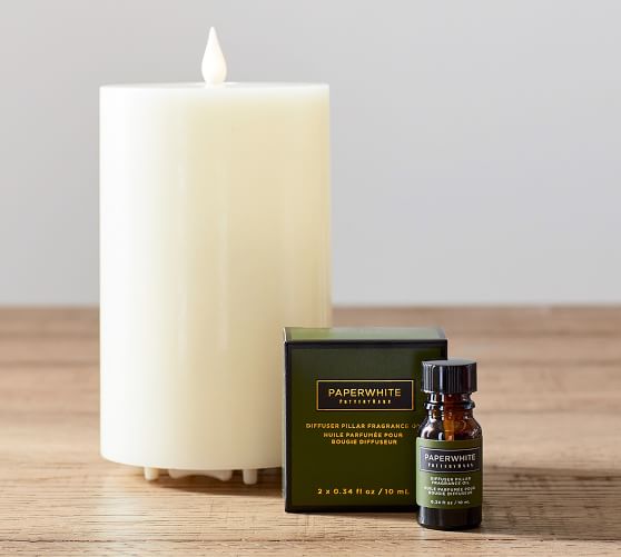 - Diffuser Oil is placed in center of candle (sold separately) and lasts approximately 30 days if used with timer mode (5 hours per day).
