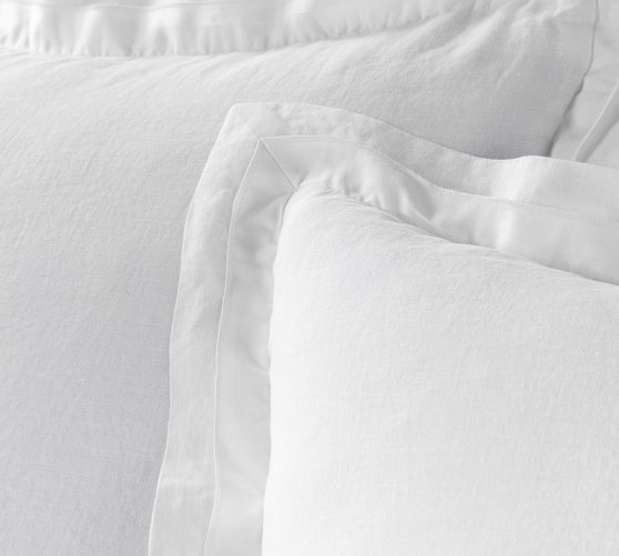 - Front fabric is made of 100% Belgian flax linen; reverse fabric is 100% cotton sateen.