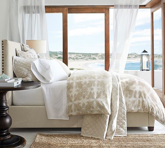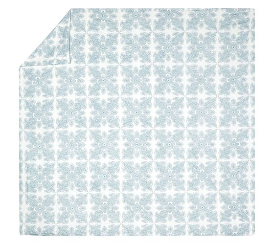 - Duvet cover has a hidden button closure and interior ties; sham has an envelope closure.