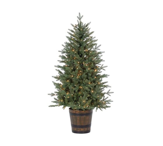 Lit Potted Faux Natural Cut Haywood Fir Tree