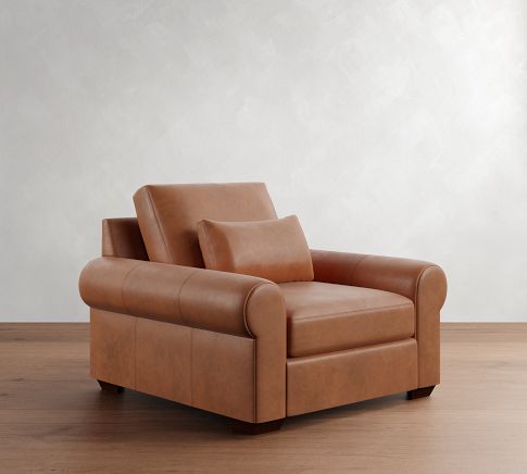 - Top-grain leather, aniline-dyed. Leather will lighten and soften with both use and time and develop a rich patina.