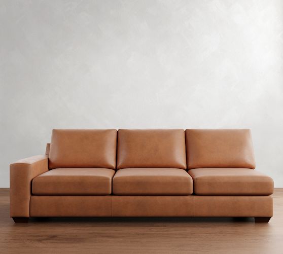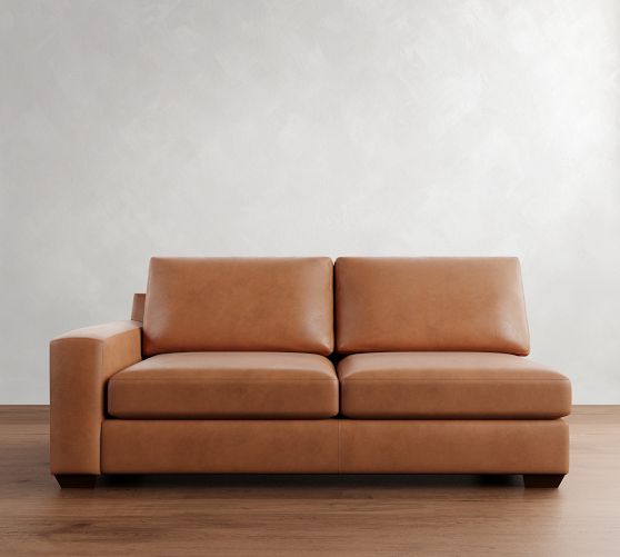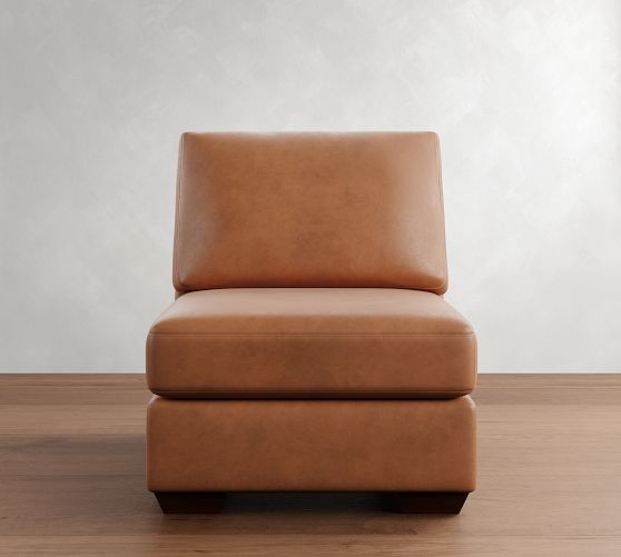 - Top-grain leather, aniline-dyed. Leather will lighten and soften with both use and time and develop a rich patina.