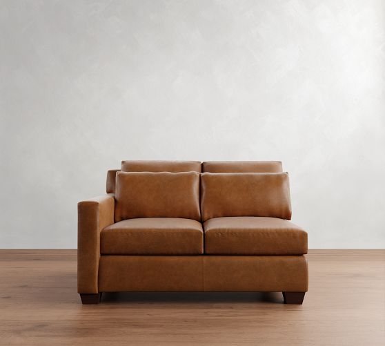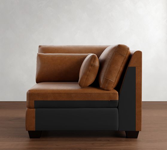 - Top-grain leather, aniline-dyed. Leather will lighten and soften with both use and time and develop a rich patina.