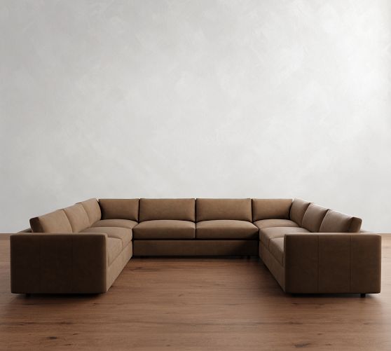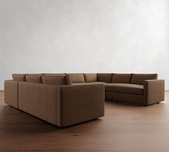 Carmel Slim Arm Leather U-Shaped Sectional (174"–186")
