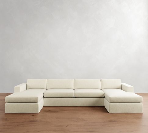 Sectional with Sofa and Standard Chaises (40" wide), shown in Performance Heathered Basketweave, Ivory