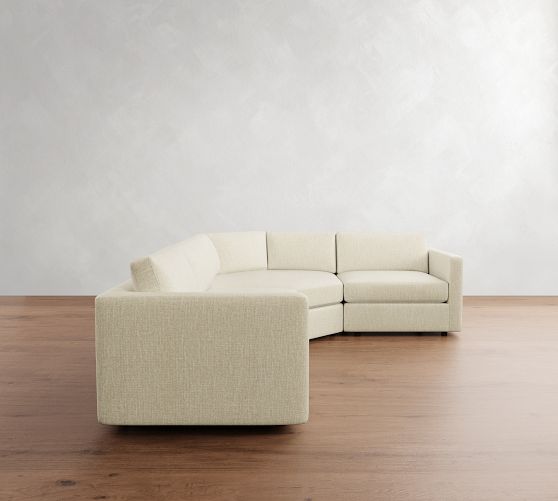 Left Arm Sectional shown in Performance Heathered Basketweave, Ivory with Large Wedge