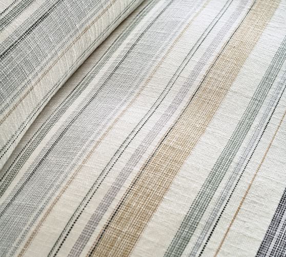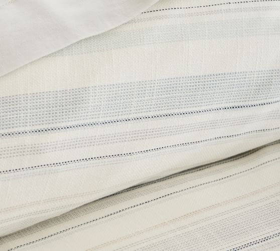 - Yarn-dyed fiber has incredibly rich color that holds its vibrancy over time. Duvet and Shams reverse to solid off white.