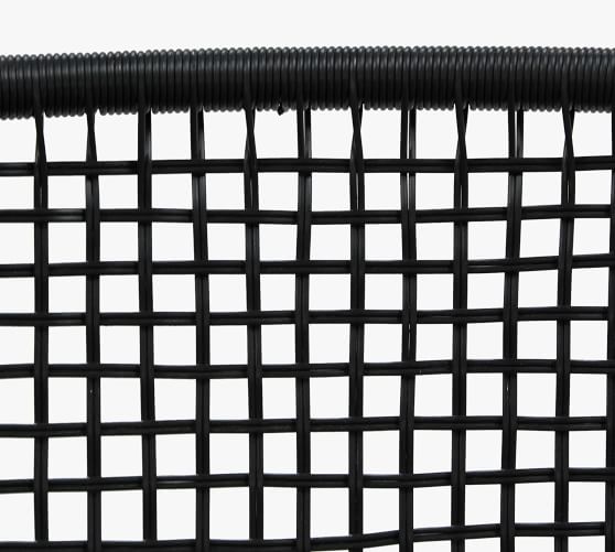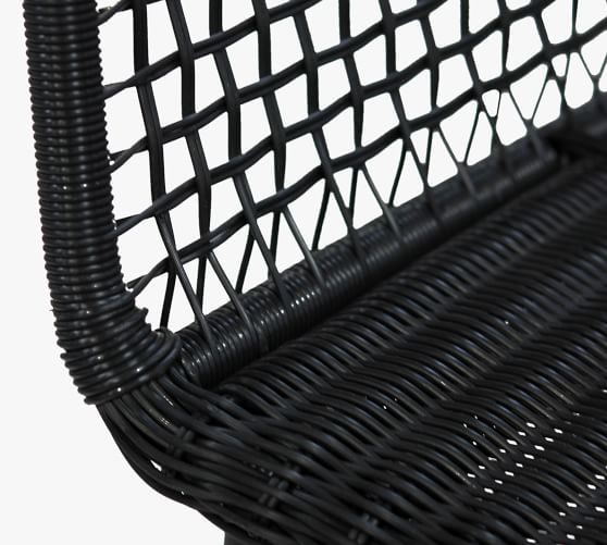 - Made of a sturdy iron frame and woven synthetic rattan in a Black finish.