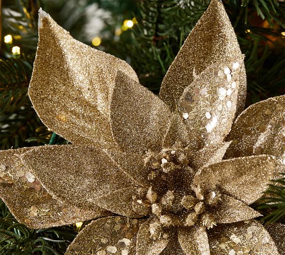 Gold Glitter Poinsettia Tree Pick - Set of 5