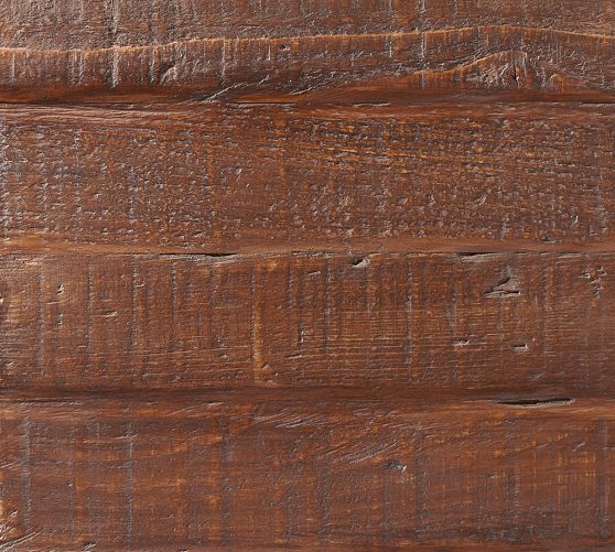 - The reclaimed wood features variations inherent to salvaged materials such as a rustic distressed finish; visible nailheads, knots, hairline cracks and oil stains, which may result in hue variations, rubbed edges, or other antique-like characteristics.