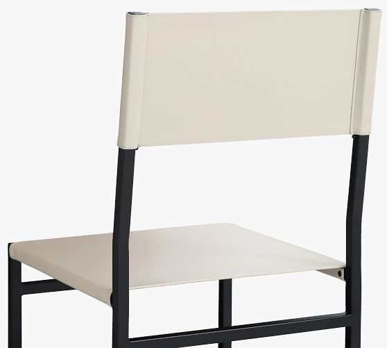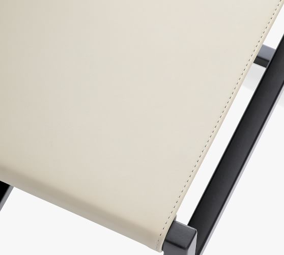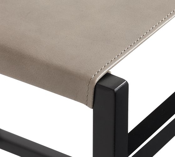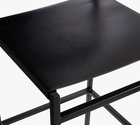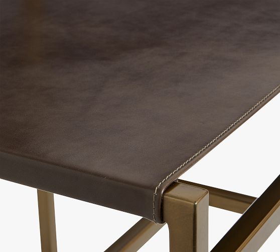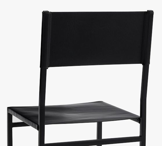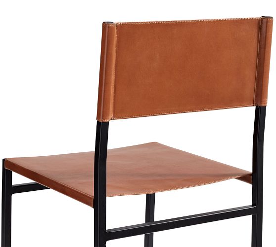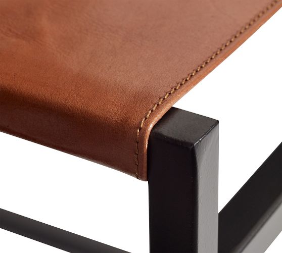 - Frame is made of metal with a leather seat and back.