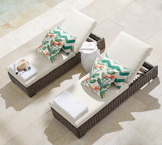 - Gray chaise includes Natural cushions and Natural chaise includes White cushions.