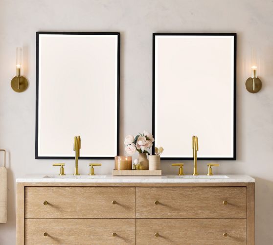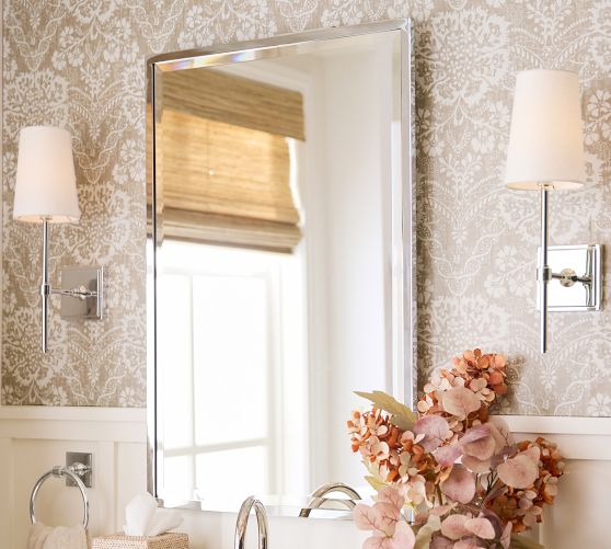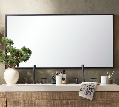 - Frame is made of aluminum with MDF backing and finished in a choice of Polished Nickel, Satin Nickel, Chrome, Matte Black, Vintage Brass or Aged Bronze.