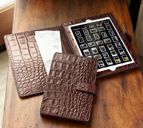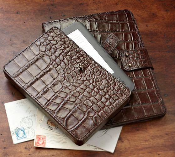 Crafted from crocodile-embossed leather and lined with protective polysuede fabric, this case provides handsome, durable storage for your eReader. The case opens as a book and features an inner pocket for storing documents. It’s designed to fit most brands, including the Kindle®.