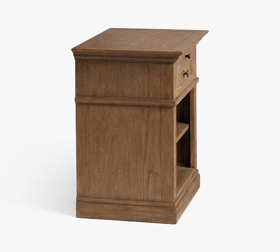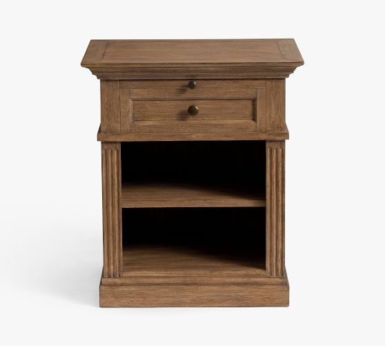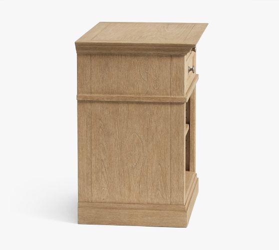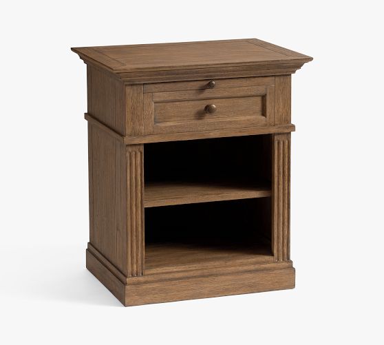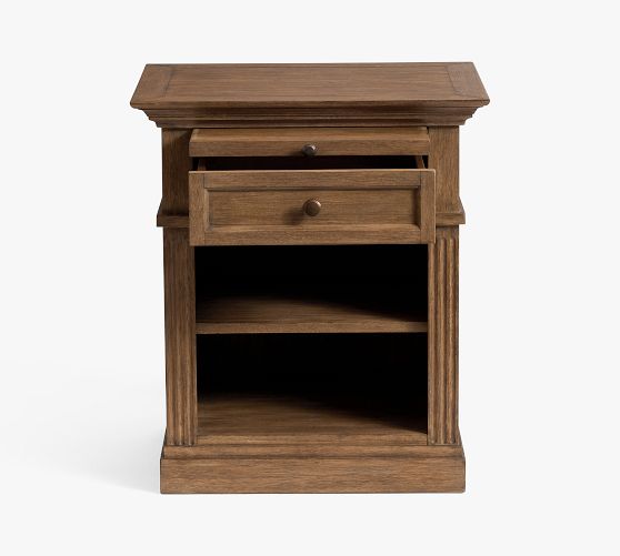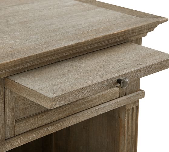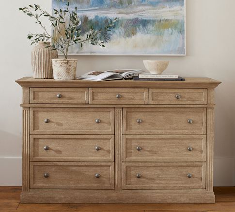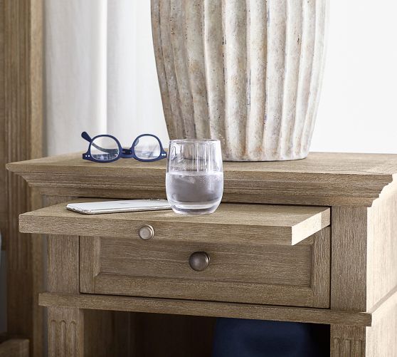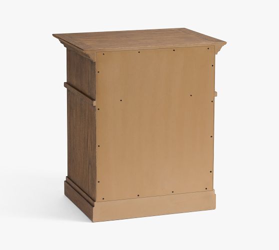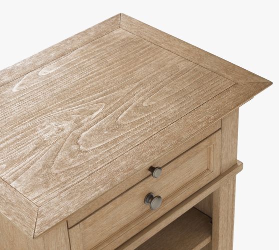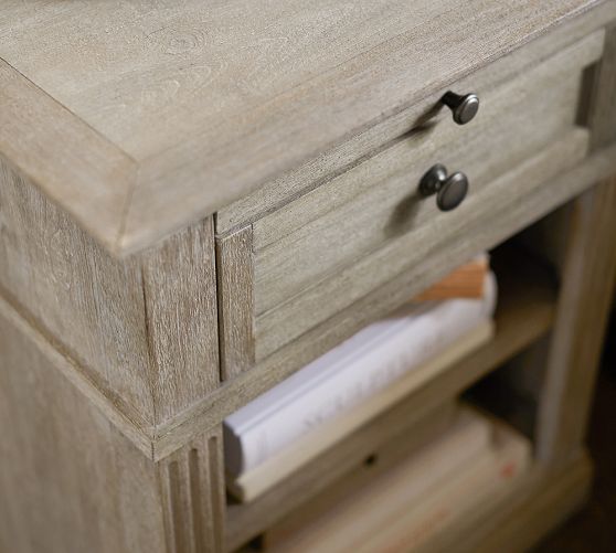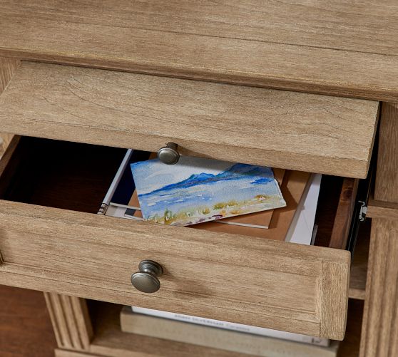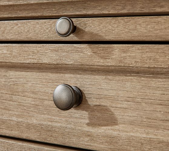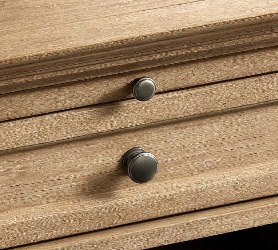 - Drawers feature English dovetail joinery and metal glides, which ensure smooth motion. Sturdy half-moon safety stops keep drawers securely in place.