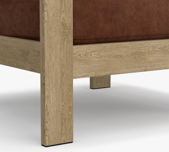 - Top-grain leather, aniline-dyed. Leather will lighten and soften with both use and time and develop a rich patina.