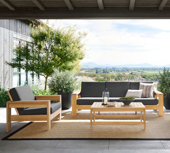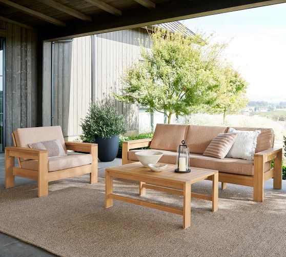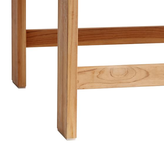 - Crafted of teak, an ultra-durable hardwood that stands up to the elements and takes on a beautiful silvery patina over time.