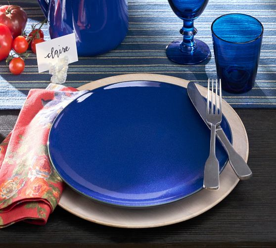 - Crafted of 100% stoneware with a reactive glaze finish.