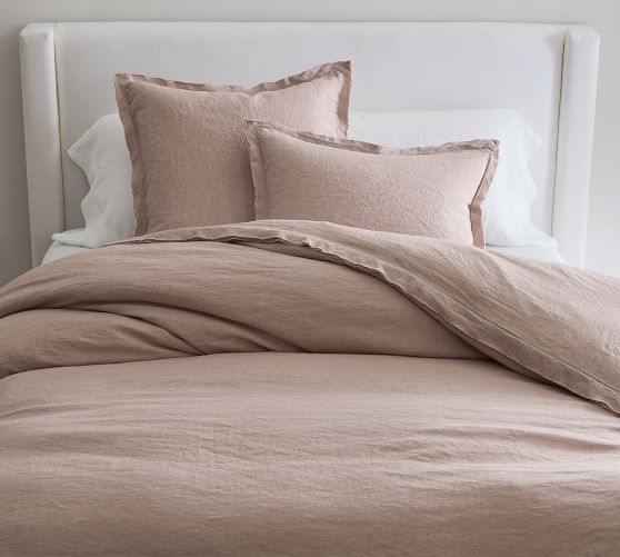 - Linen woven from 100% Belgian flax; reverse is a 75% linen and 25% cotton blend.