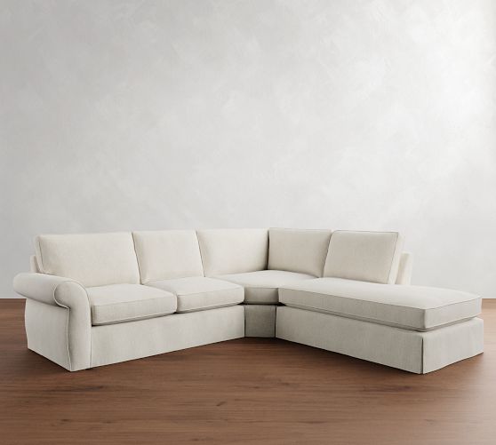 Pearce Roll Arm Slipcovered 3-Piece Bumper Sectional (122")