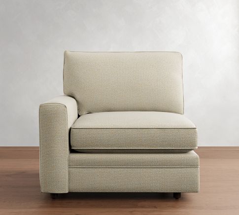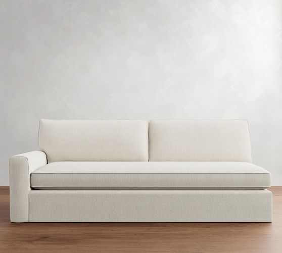 Left Arm Chair shown in Sunbrella® Performance Slub Tweed, White