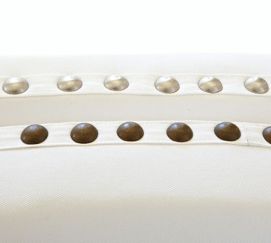 Shown in Denim, Warm White with Bronze Nailheads