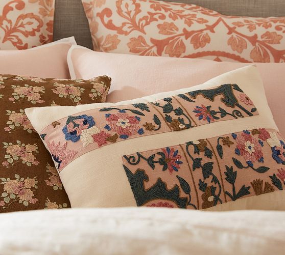 Sarah Embroidered Lumbar Pillow Cover