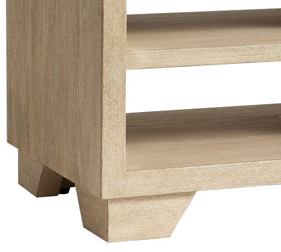 - Finished by hand in a stain that accentuates the wood’s subtle knots and burls, then sealed with a protective lacquer.