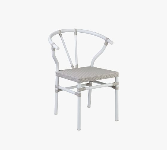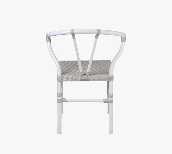 Recalling classic mid-century designs, this dining chair adds understated style to your entertaining area. A sculptural frame crafted of weather-resistant, powder-coated aluminum features an enveloping back that flows seamlessly into the arms, while the handwoven rattan seat offers rich textural contrast. Trisha is suitable for use indoors and out.