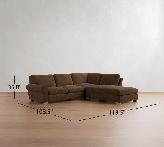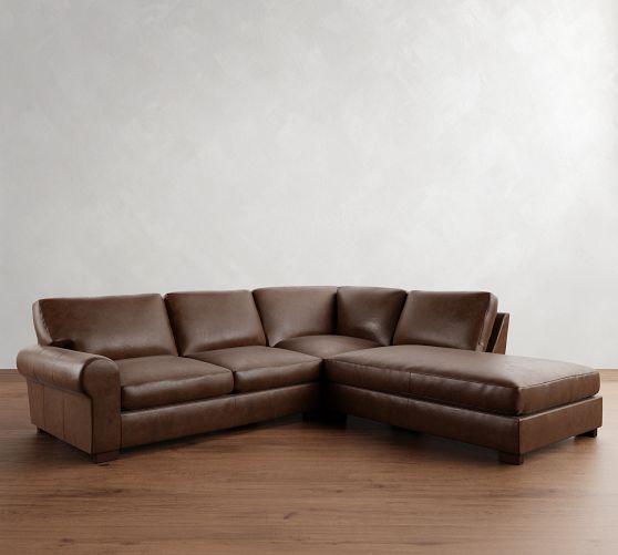 Turner Roll Arm Leather 3-Piece Bumper Sectional (109"-114")