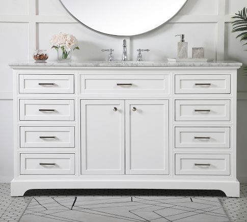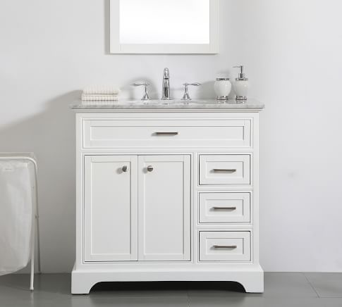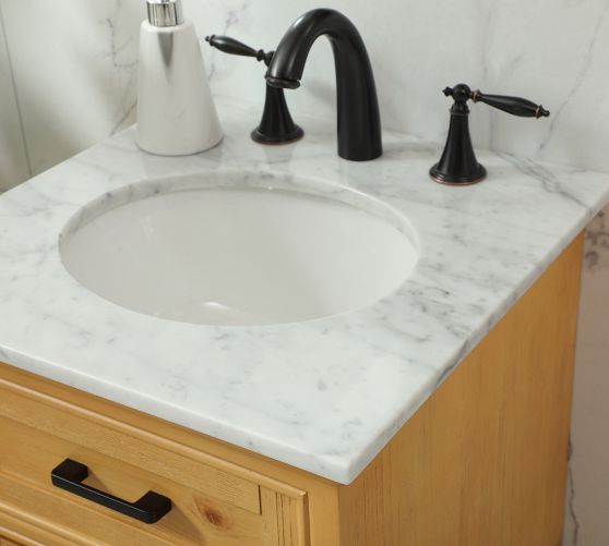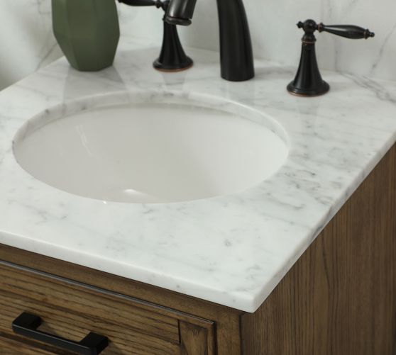 - Expertly crafted from solid hardwood and MDF with a Carrara Marble top.