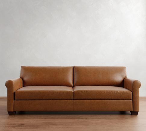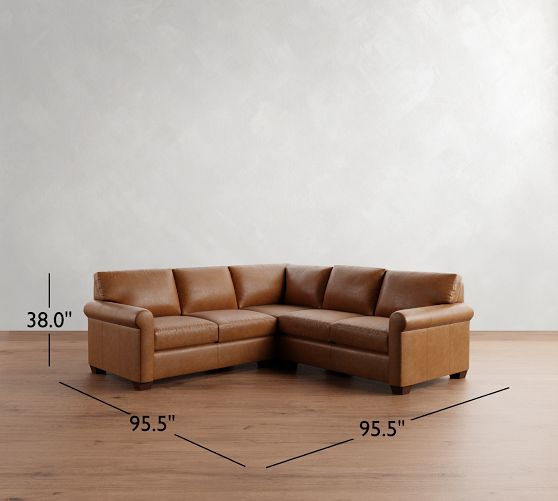 York Roll Arm Leather 3-Piece L-Shaped Sectional (96")