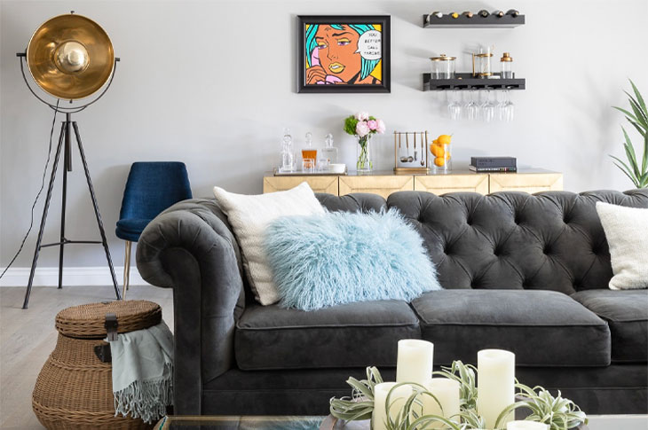IR: My semicircle off-white couch! It is the best. My young niece and nephews are always drawn to it to come [mess] it up when they come visit, so I know it's nice. I rarely sit on it. I also love my bar.