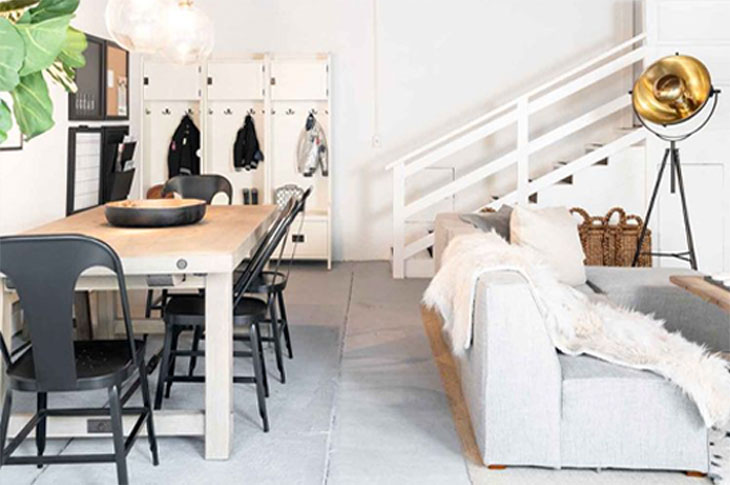 "She's the perfect client," Palomino tells AD. "I have the utmost appreciation and respect for an authentic person who knows what she likes, and maybe more importantly, what she doesn't!" The decorator partnered with Pottery Barn to overhaul Rae's two living rooms and entryway to her exact specifications. "It was important to Issa that she have a space that both could easily accommodate tons of friends, and still be capable of feeling intimate and casual. She was very involved in the entire process and signed off on every last detail," says Palomino.
