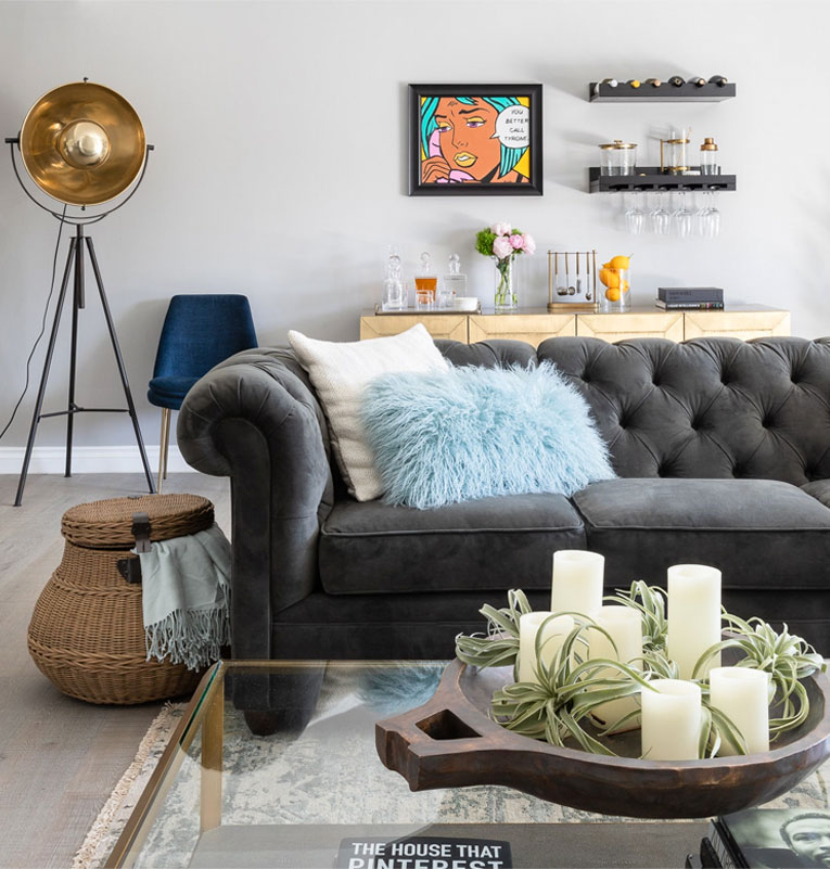 "She's still in her humble beginnings phase, doing the best she can to be comfortable at age 30," says Rae of the onscreen Issa. "Her artwork is sick, and I want every piece. But other than that, [our decor styles are not similar]. She has the patience to thrift." By contrast, "I'm almost 35 and I'm pretty confident in who I am," says Rae. This meant that from her first meeting with designer Barbie Palomino, she knew what she wanted.