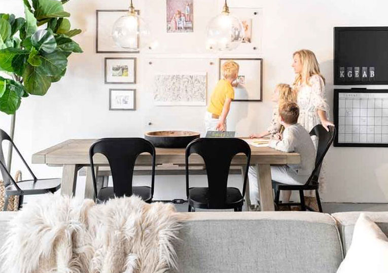 Rae with designer Barbie Palomino in her new family room. Photo: Jess Isaac