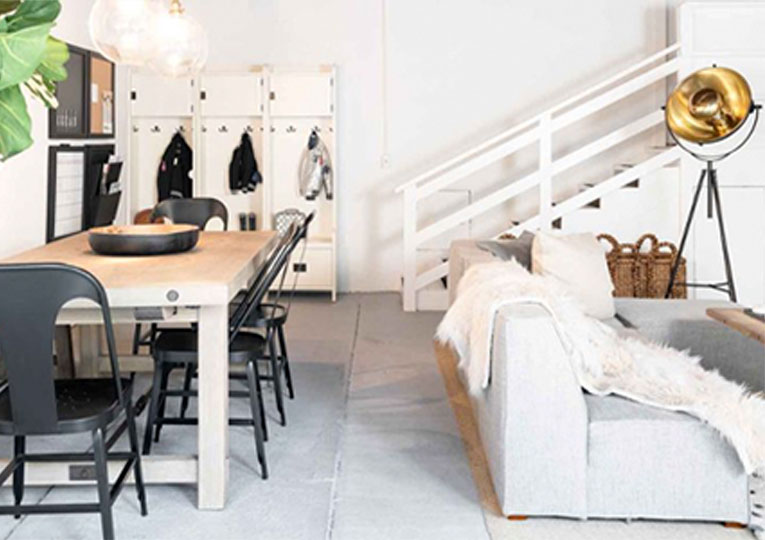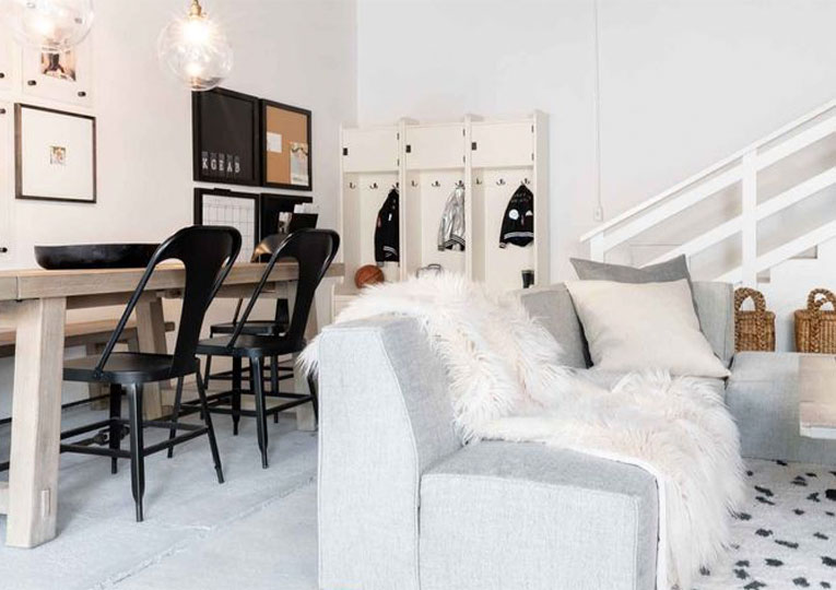 "She's the perfect client," Palomino tells AD. "I have the utmost appreciation and respect for an authentic person who knows what she likes, and maybe more importantly, what she doesn't!" The decorator partnered with Pottery Barn to overhaul Rae's two living rooms and entryway to her exact specifications. "It was important to Issa that she have a space that both could easily accommodate tons of friends, and still be capable of feeling intimate and casual. She was very involved in the entire process and signed off on every last detail," says Palomino.