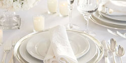 When purchasing linens and accessories such as napkin rings, opt for pieces that you can easily coordinate with one another. This makes it easy to set up the table quickly, leaving you more time prepare for your guests. Mix-and-match linens and accessories also offer more flexibility, creating a solid base for centerpieces and other decorations.