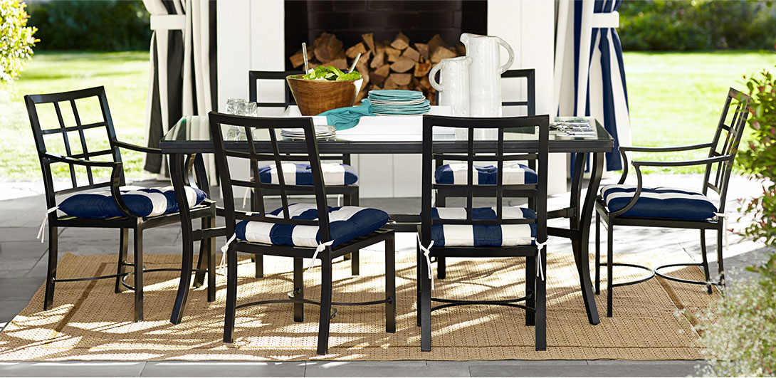 This rustproof aluminum collection boasts clean lines and a lightweight frame that’s easy to rearrange.