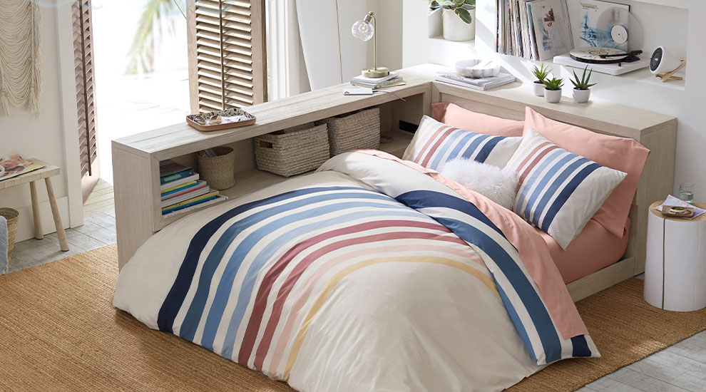 Bring a surf's–up spirit to your home with breezy prints and a sun–washed palette.