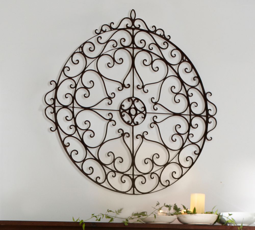 Combining dramatic scale and the lacy look of filigree, this iron medallion creates a dramatic focal point without overwhelming the room.