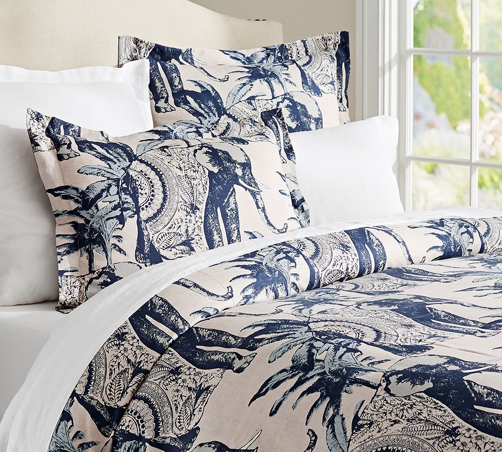 - Majestic elephants from 16th-century Indian artwork are depicted with exceptional detail against a backdrop of natural foliage. Duvet cover and sham reverse to the same design.