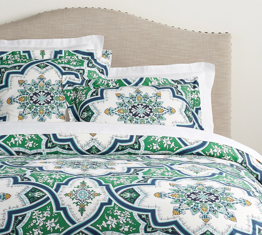 - Reverses to self, featuring a tile work mosaic of interlocking shapes in rich hues that brings depth to the bedding’s design.