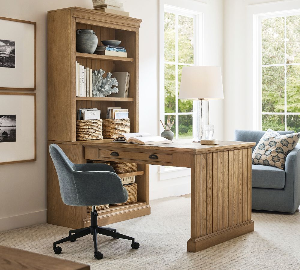 | Aubrey 68" Peninsula Desk with Bookcase, Seadrift |