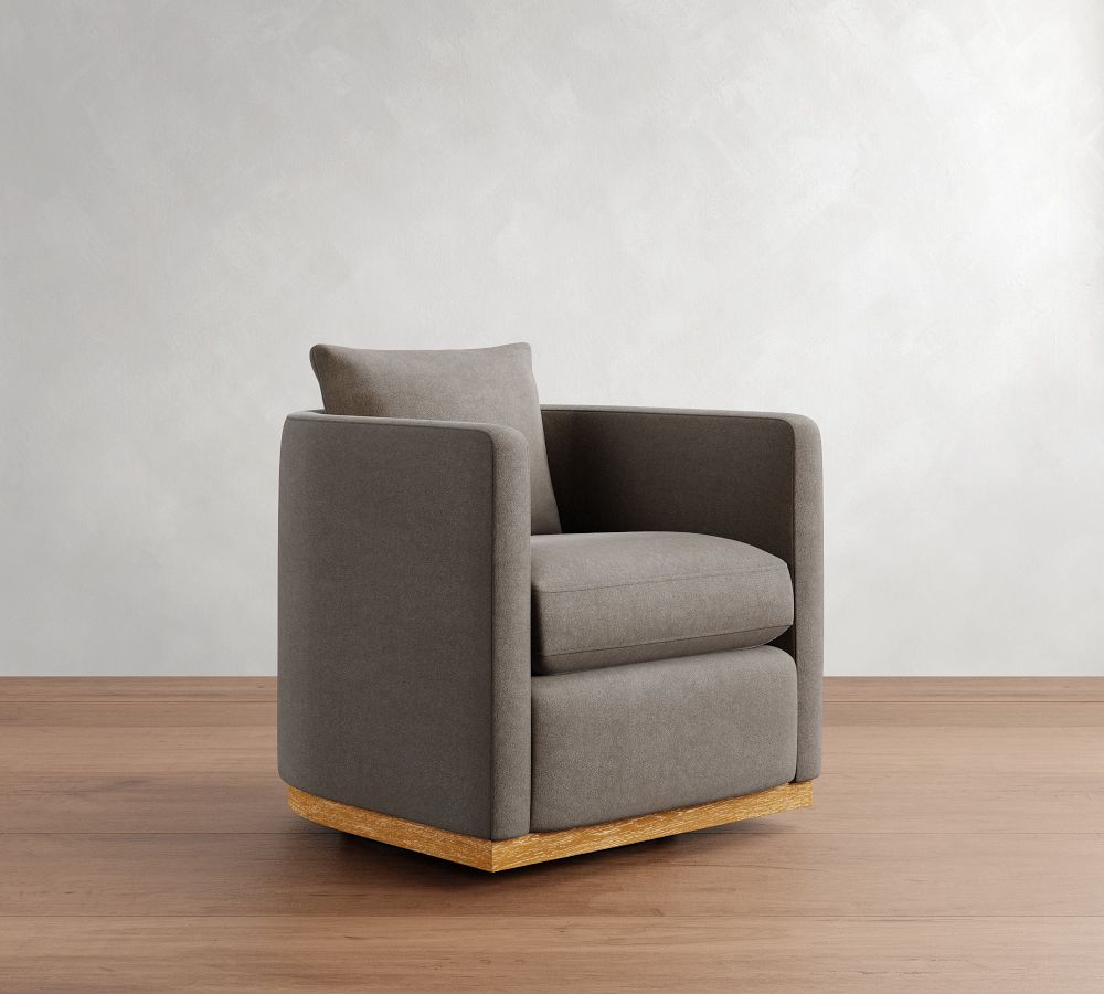 Ayden Barrel Arm Wood Base Swivel Chair