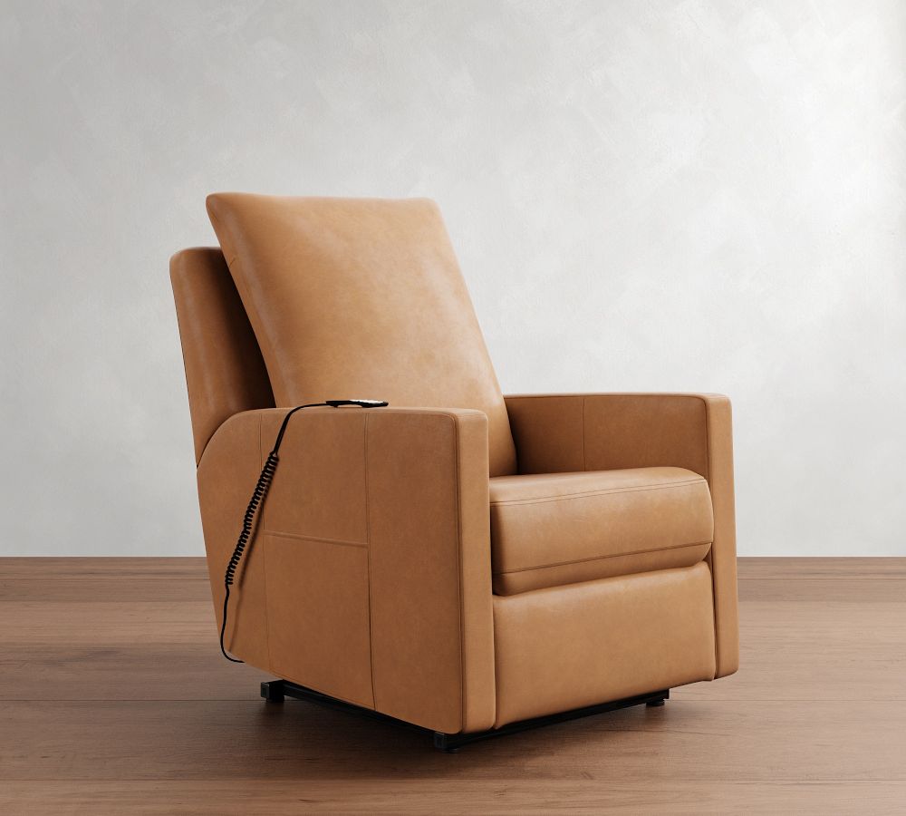 Ayden Square Arm Leather Power Lift Recliner with Massage & Heat