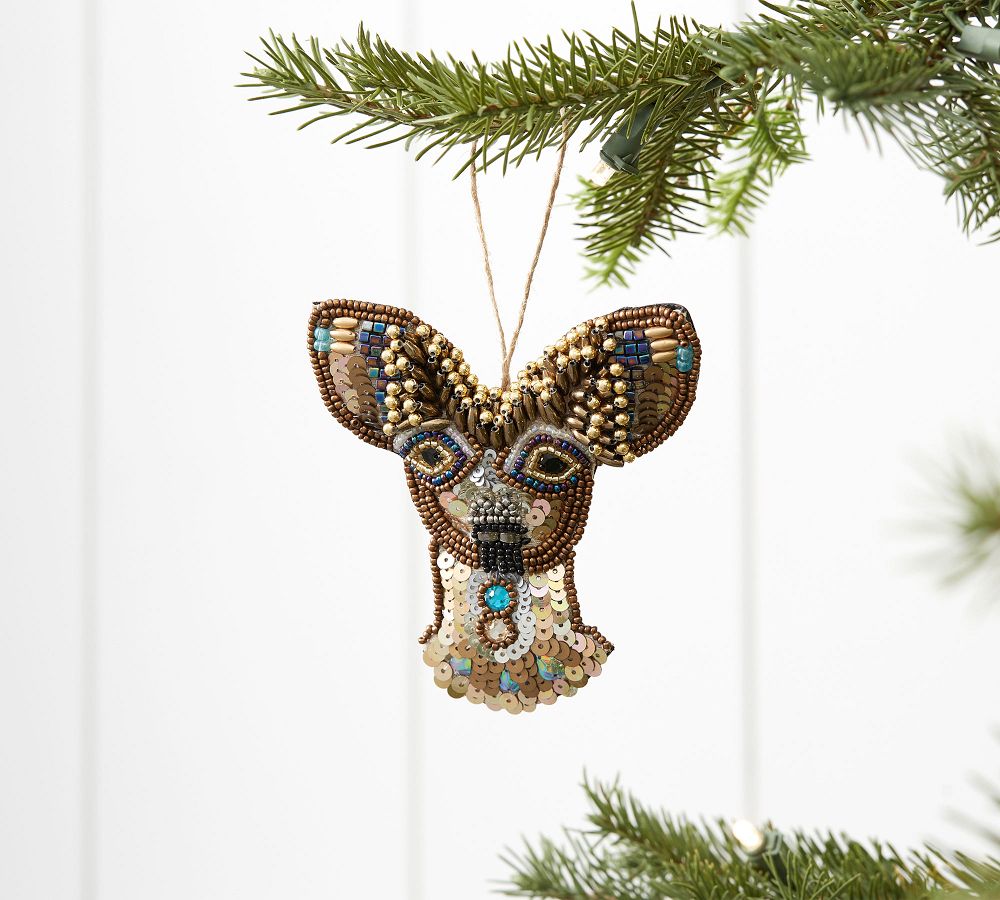 Perfect as a holiday gift or hanging from the tree, our Beaded Deer Ornament showcases stunning shades of brown, gold and blue, and makes an ideal accent to your trusted seasonal decor.