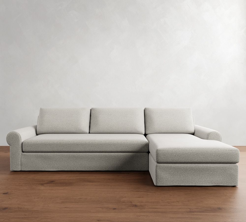 Big Sur Roll Arm Slipcovered Chaise Sectional (115"–157")