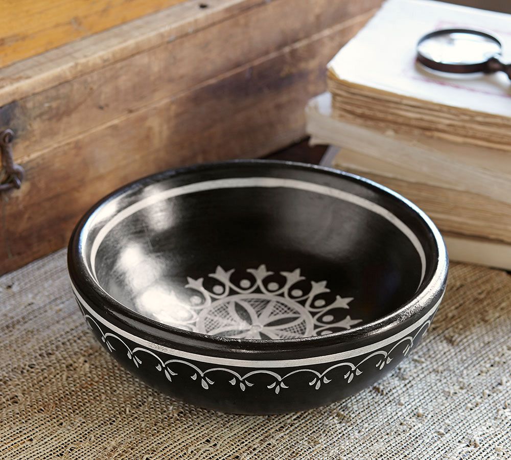 Our hand-painted bowl has the look of a treasured find. Intricate design details add to its vintage look.