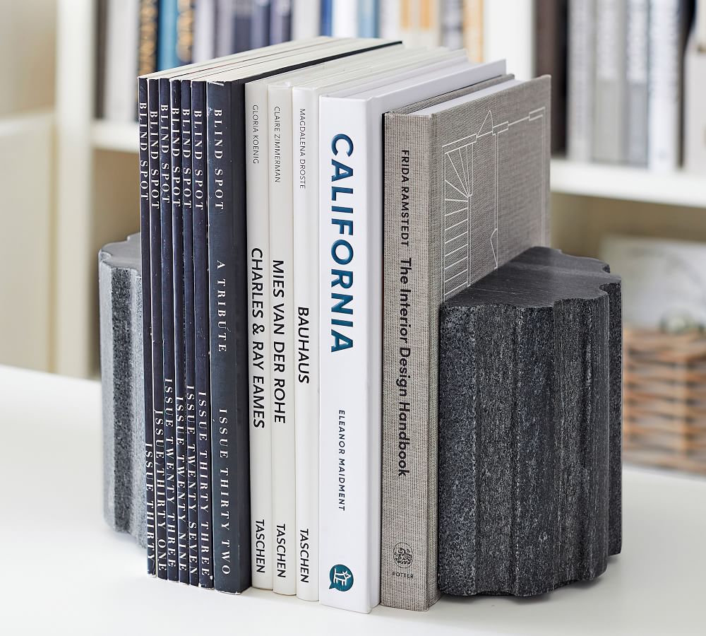 Crafted of solid black marble, our bookends lend a classic look to your favorite volumes. This set of two is meticulously handmade with variations in the stone’s tone and texture adding one-of-a-kind character, while a fluted design accentuates its timeless appeal.